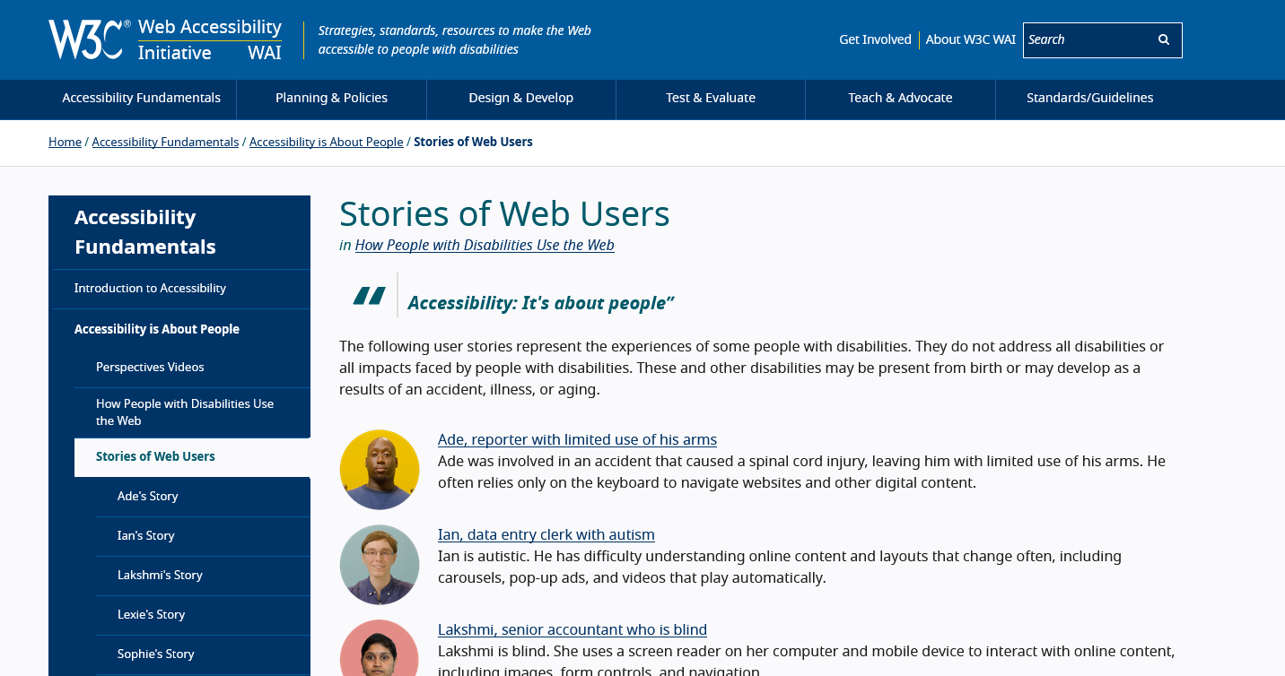 Dazu hat die Arbeitsgruppe WAI die Erfahrungen von 9 Nutzer*innen in Videos festgehalten. Die Videos stehen in englischer Sprache online zur Verfügung.